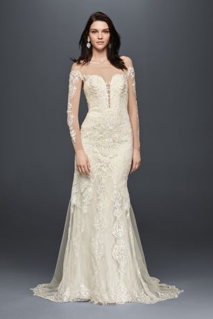 Allover Lace Long-Sleeve Sheath Wedding Dress - David's Bridal Ivory Lace Galina Signature Long Sleeve ... - Find elegance in column or sheath wedding dresses in bhldn bridal dresses from anthropologie's wedding lace, simple, and satin sheath and column wedding dresses.